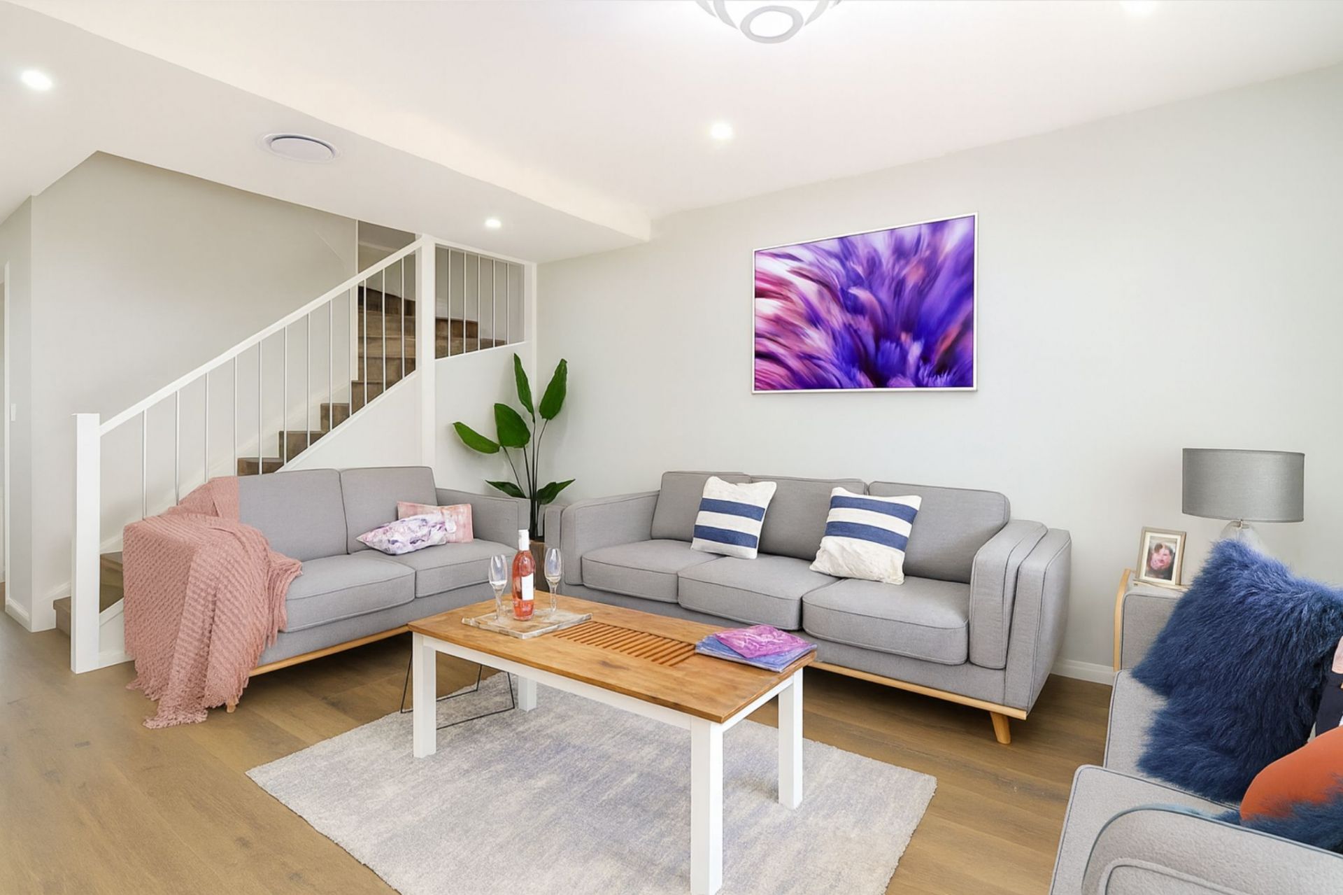 – Stylish and durable hybrid flooring throughout bedrooms, stairs, and hallway.